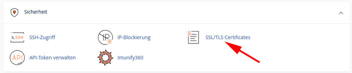 Wenn Sie doch manuell etwas anpassen wollen oder müssen (Beispiel: Ihre Website läuft extern bei einem Website-Baukasten-Anbieter – dann sorgt dieser Anbieter für das Zertifikat und das Zertifikat bei ah,ja! muss gelöscht werden), finden Sie in Ihrer Hostingverwaltung (cPanel) das Icon «SSL/TLS Certificates»: